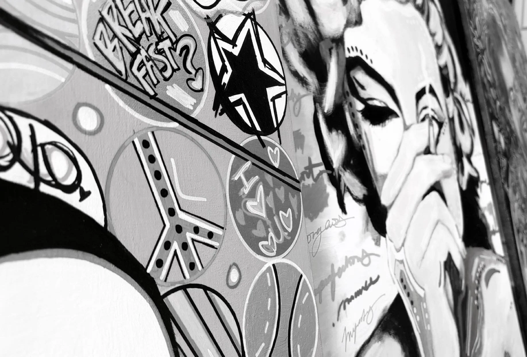 Lauryn Alivia Smith is an emerging artist, focusing on large-scale, colorful acrylics infused with vibrant textures and layers of graffiti-style work. Her art depicts prominent pop culture figures in a semi-realistic style that captures raw emotion. Lauryn’s use of texture gives her pieces a multi-dimensional rhythm which further enhances their emotional depth. Lauryn merges contemporary celebrity culture with an edge, capturing fame through a youthful, daring, and energetic lens. Each piece portrays themes such as memory, intensity, and liveliness.